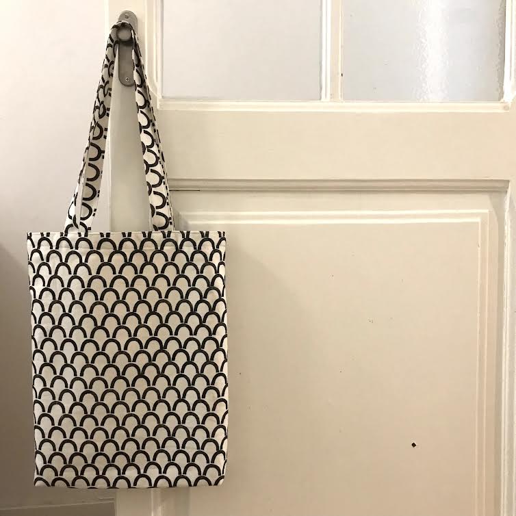 Handprinted Tote and Tote Mini (Black and White semicircle). Collection 2. (Sold separately).
